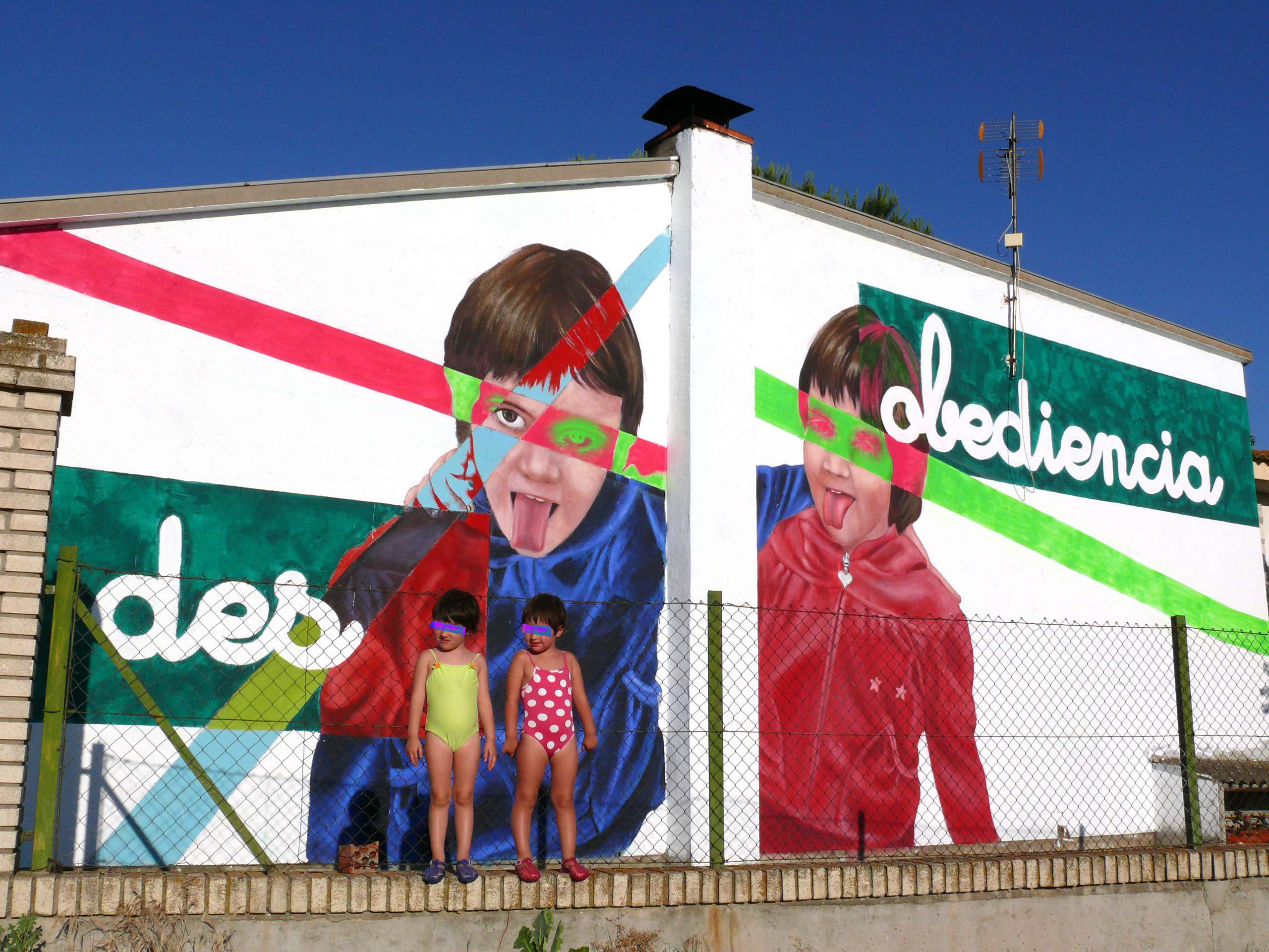 Mural a la entrada de Nava de la Asunción, con las supermodelos.