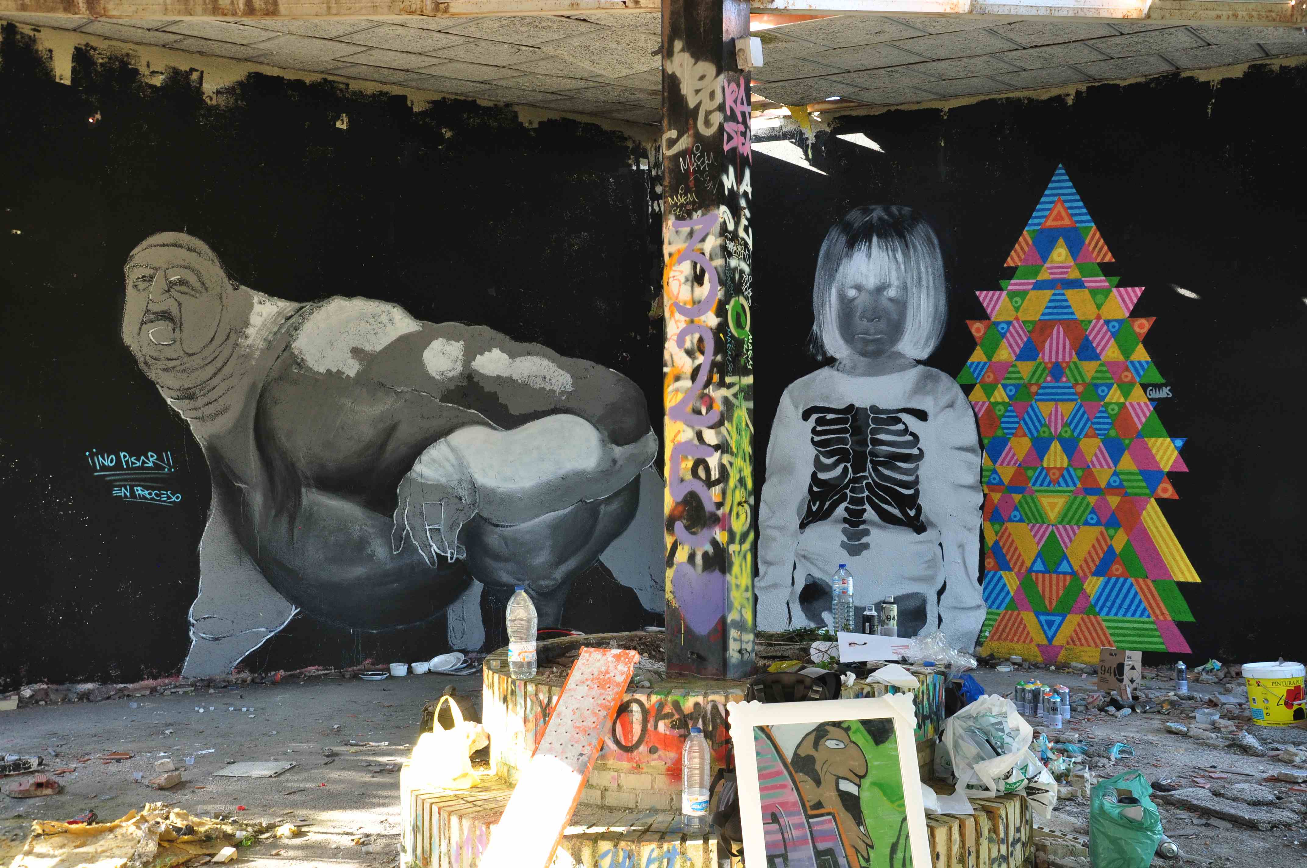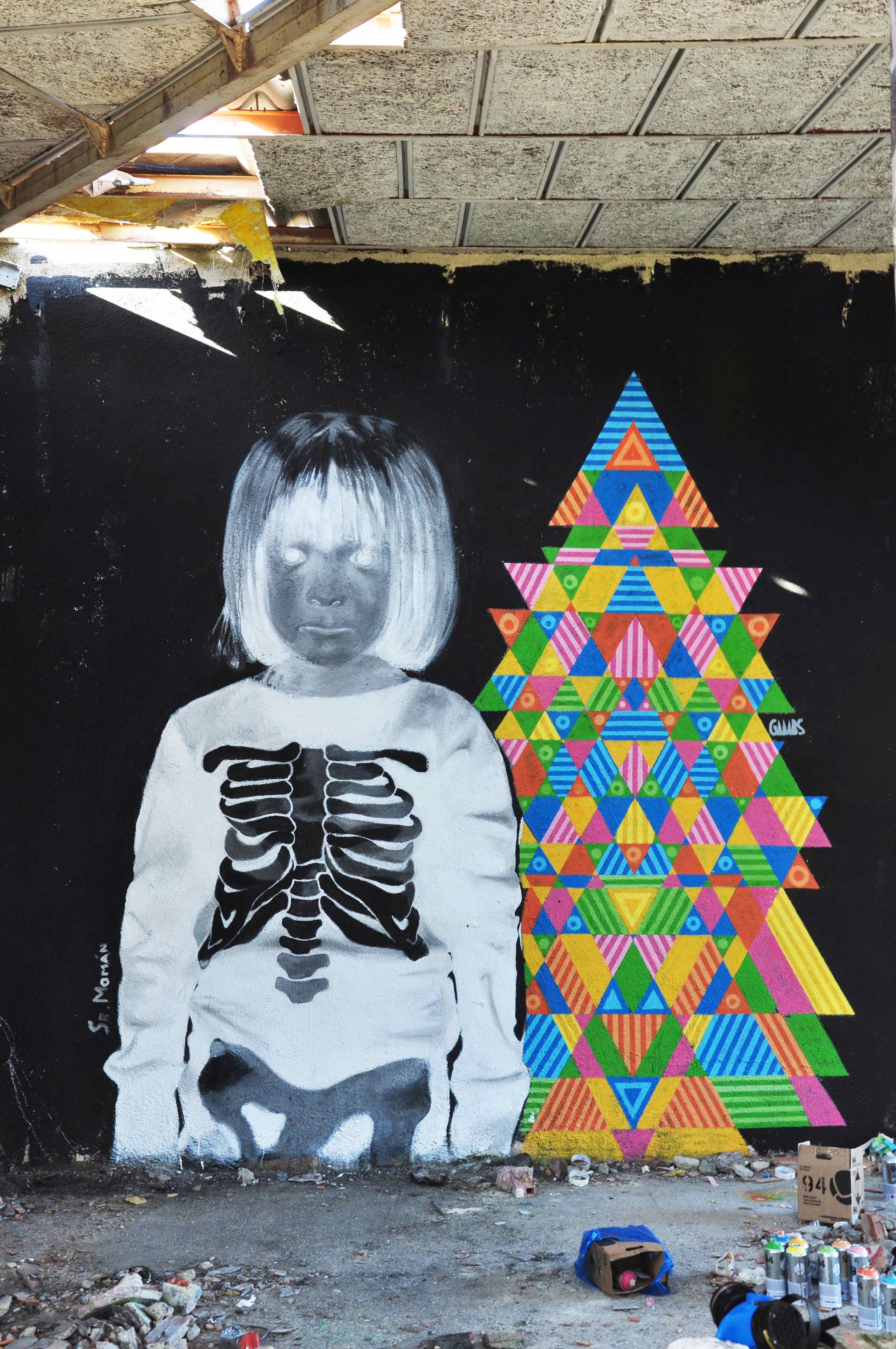 Mural en construcción. Guille Joder, Sr. Momán y Gambs Madrid.